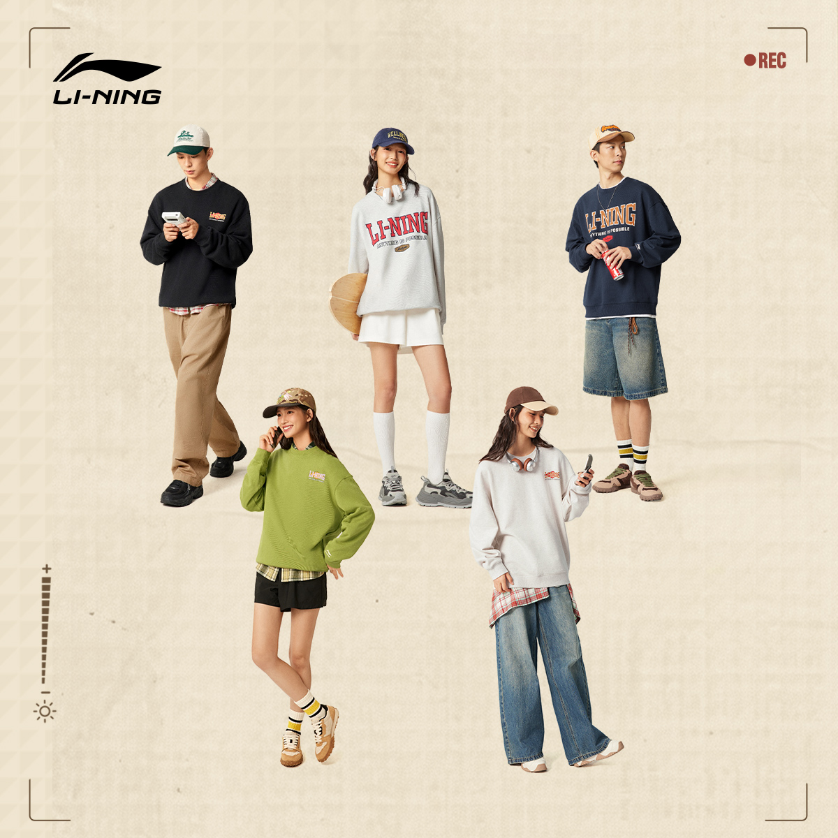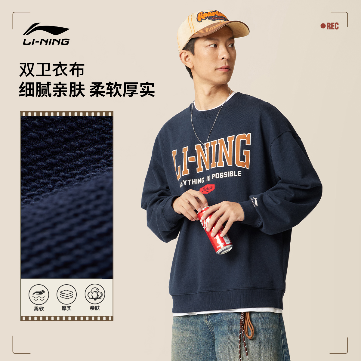 加绒加厚宽松早秋运动上衣男士 李宁卫衣女秋冬新款 情侣圆领套头衫