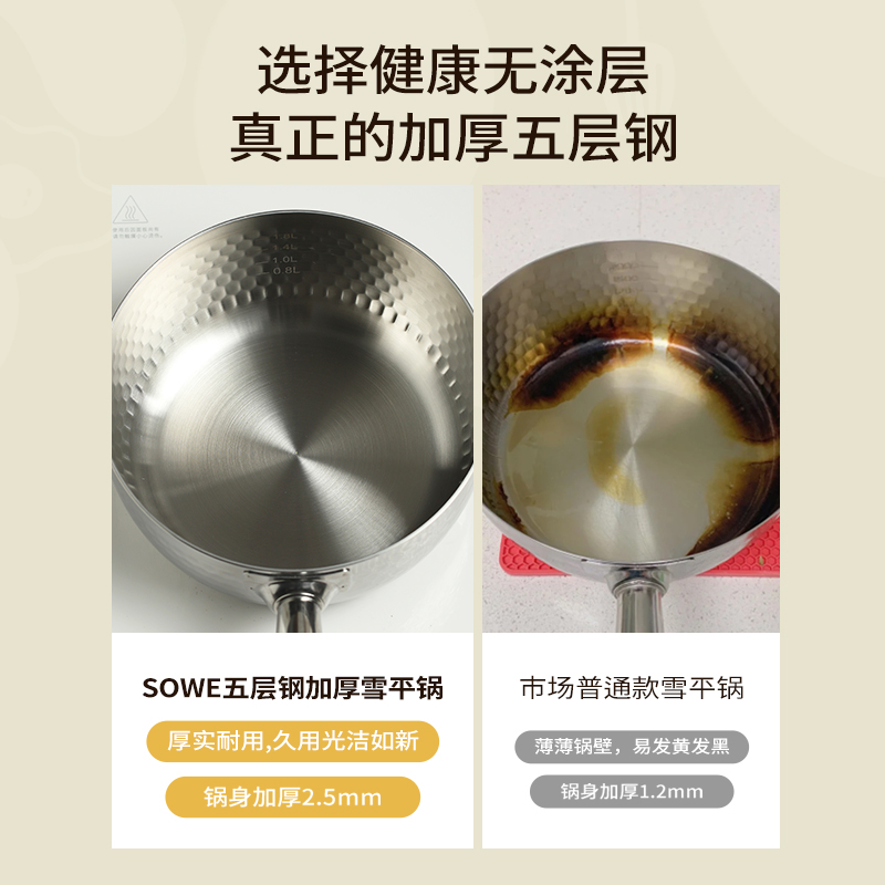 SOWE素味小奶锅日式 雪平锅宝宝专用辅食锅不锈钢婴儿家用泡面汤锅