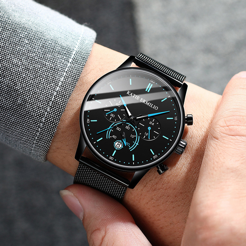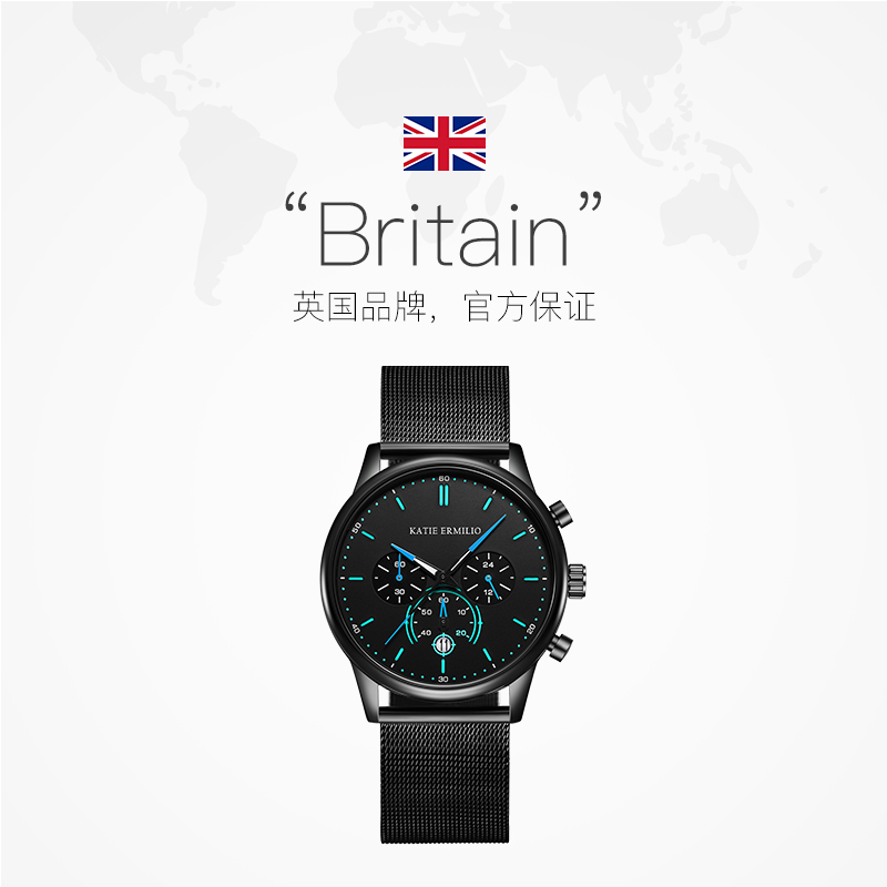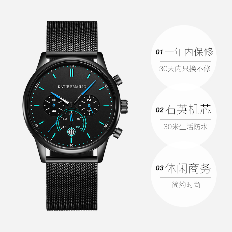 潮流三眼计时夜光欧美腕表防水男士 Ermilio Katie 手表 自营