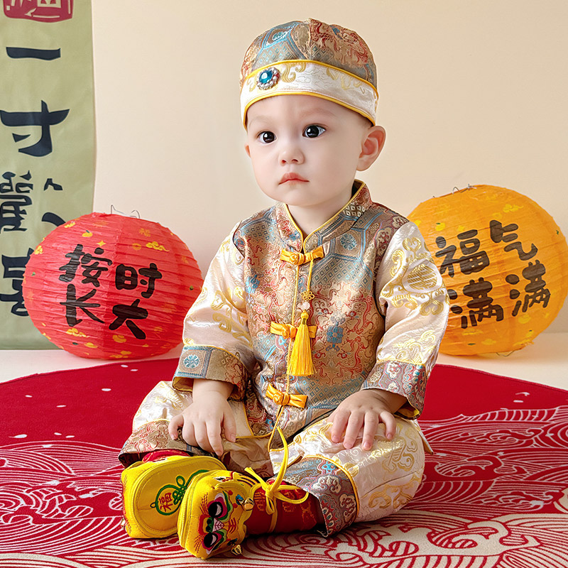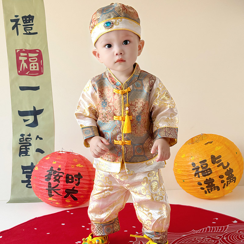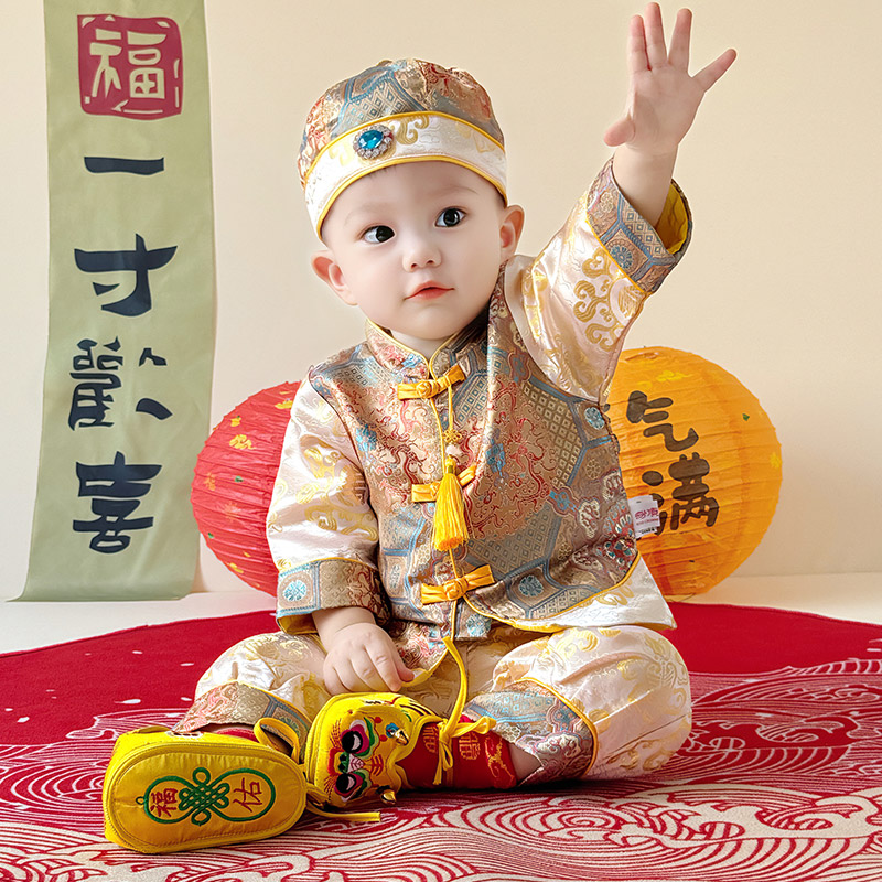 周岁服女宝新中式 套装 婴儿百天宴衣服 男宝春秋季 宝宝抓周礼服唐装