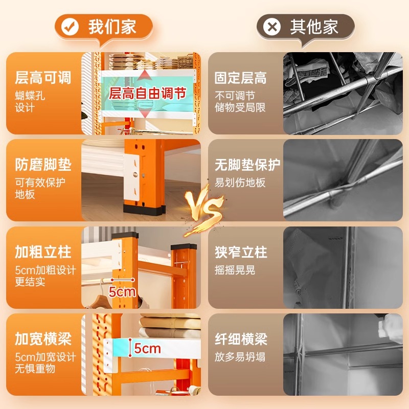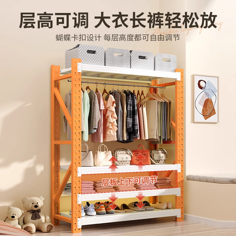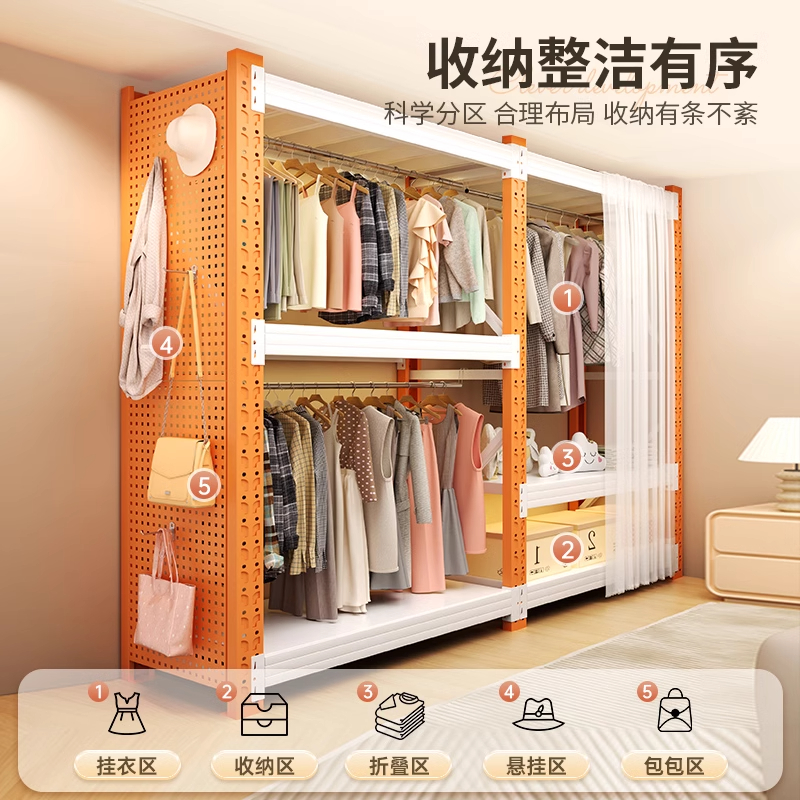 家用货架衣柜简易组装 挂衣架钢制置物架防尘帘多层收纳架子 开放式