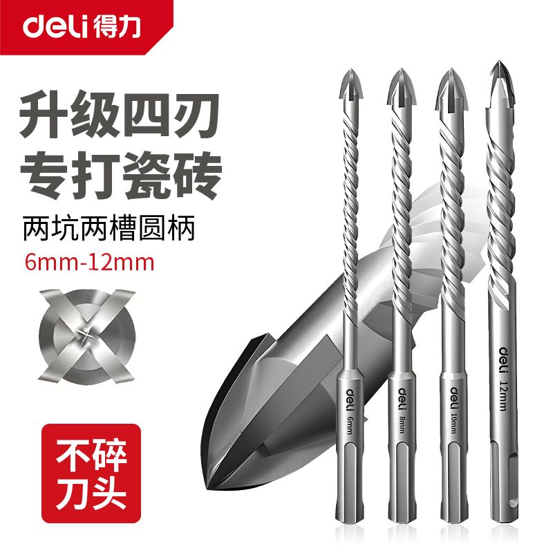 四刃电锤钻头两坑两槽圆头冲击钻头全瓷砖红砖混砖木材十字打孔转