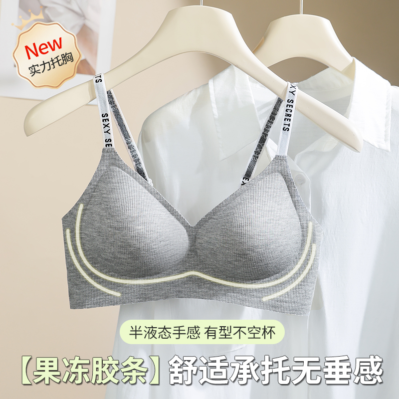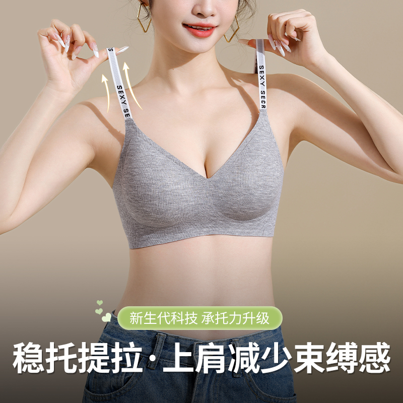 小胸聚拢内衣女无痕提拉收副乳防下垂字母细肩带可外漏美背文胸罩