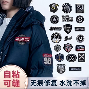可水洗羽绒服补丁贴高级免缝黑色刺绣徽章布贴衣服裤 破洞无痕修复