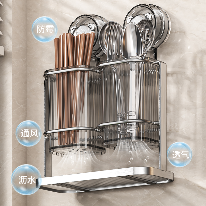 吸盘筷子收纳盒筷子筒壁挂式 筷子勺子收纳架筷子笼沥水架 家用新款