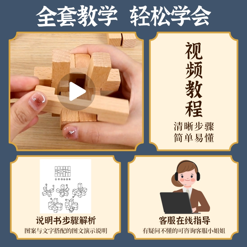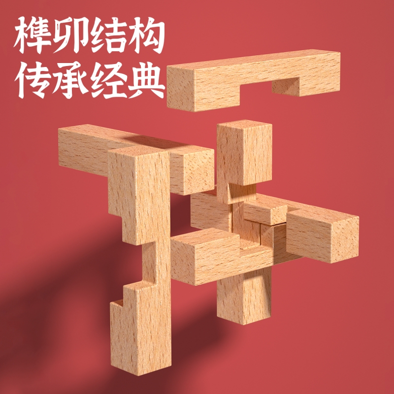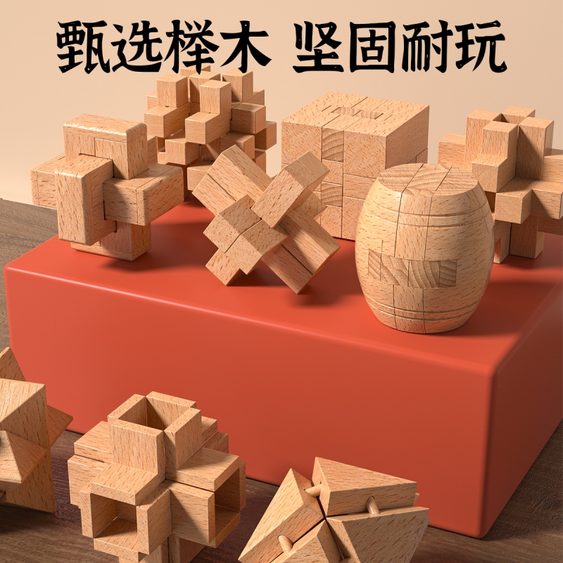 小学生鲁班锁孔明锁全套智力锁榫卯积木9儿童益智玩具8岁动脑结构