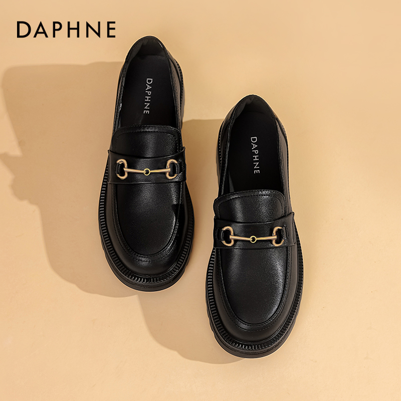 一脚蹬单鞋 达芙妮厚底乐福鞋 女黑色法式 秋英伦风小皮鞋 女2023爆款