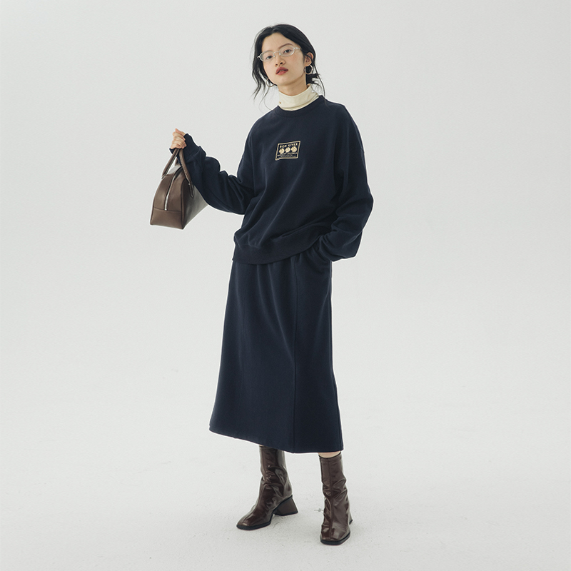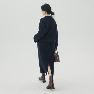 omont蛋挞家灰色开叉半身裙女2023新款 a字裙子 秋冬休闲高腰中长款