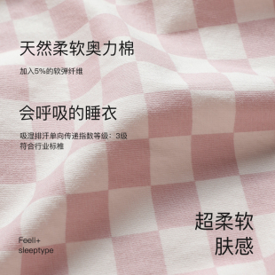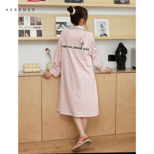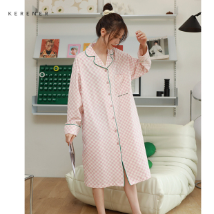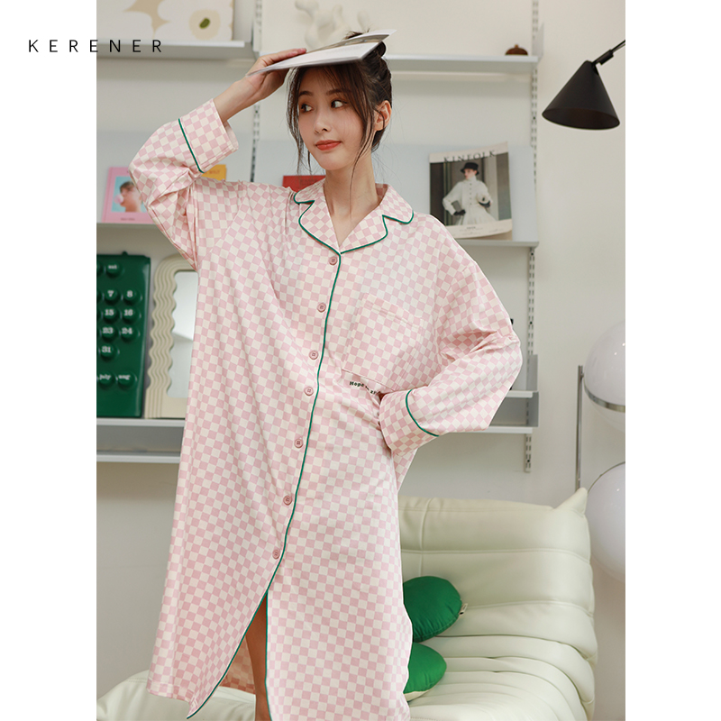 棋盘格大码 开衫 睡裙家居服 柔软棉睡衣女宽松纯棉长袖 可人儿春秋款