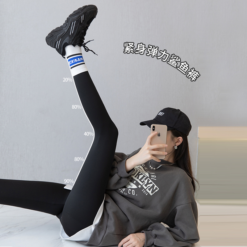 加绒高腰瑜伽裤 薄款 鱼鲨打底哭路 女外穿春秋季 无尴尬线咖色鲨鱼裤