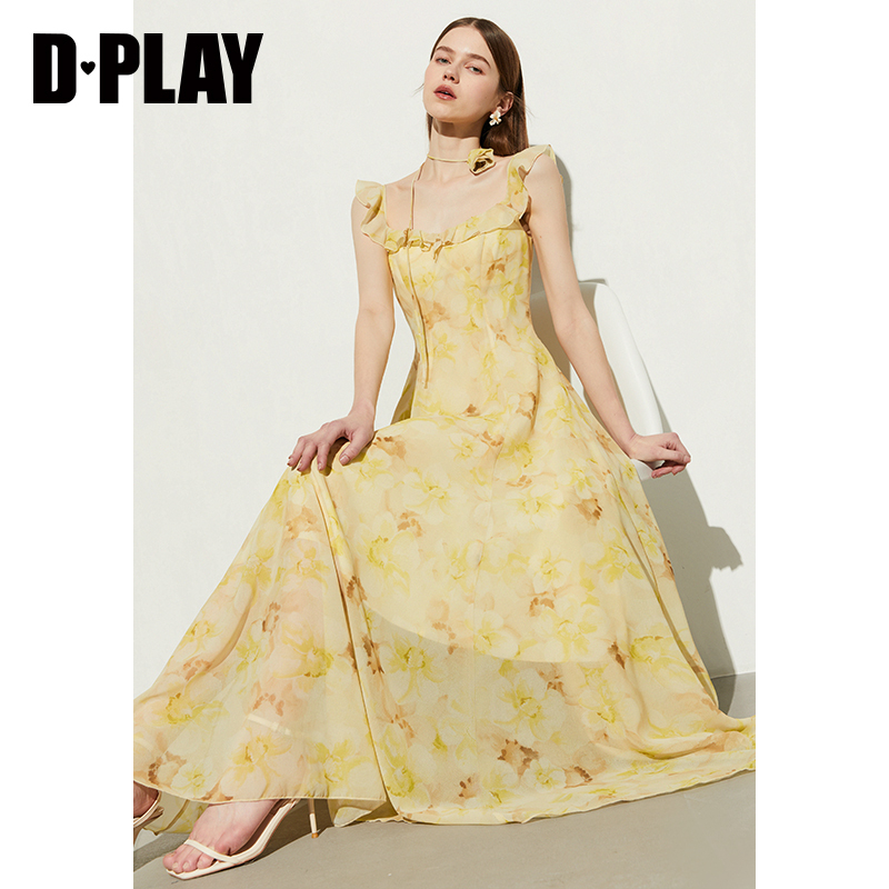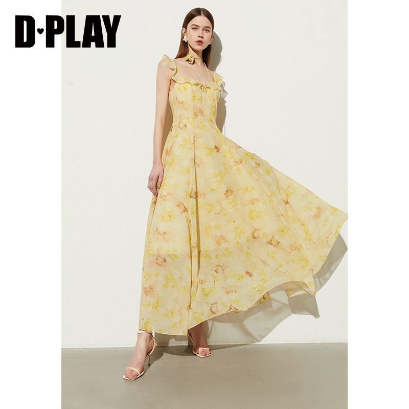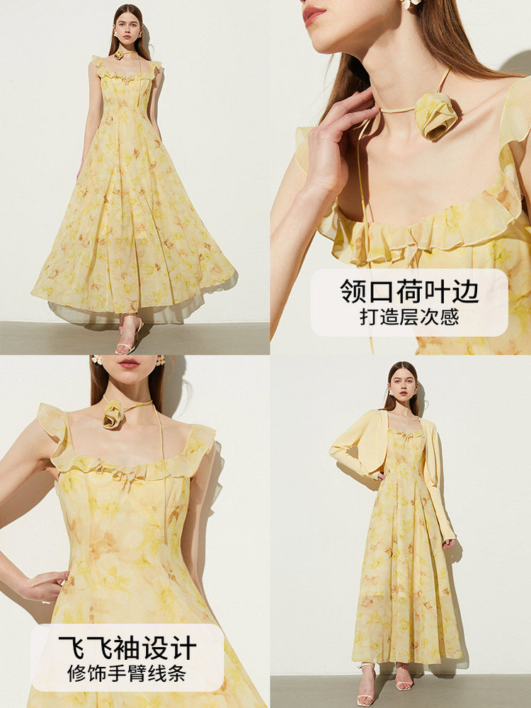 COCOBELLA国风重磅缎面印花吊带裙女掐腰连衣裙FR0012 折扣季
