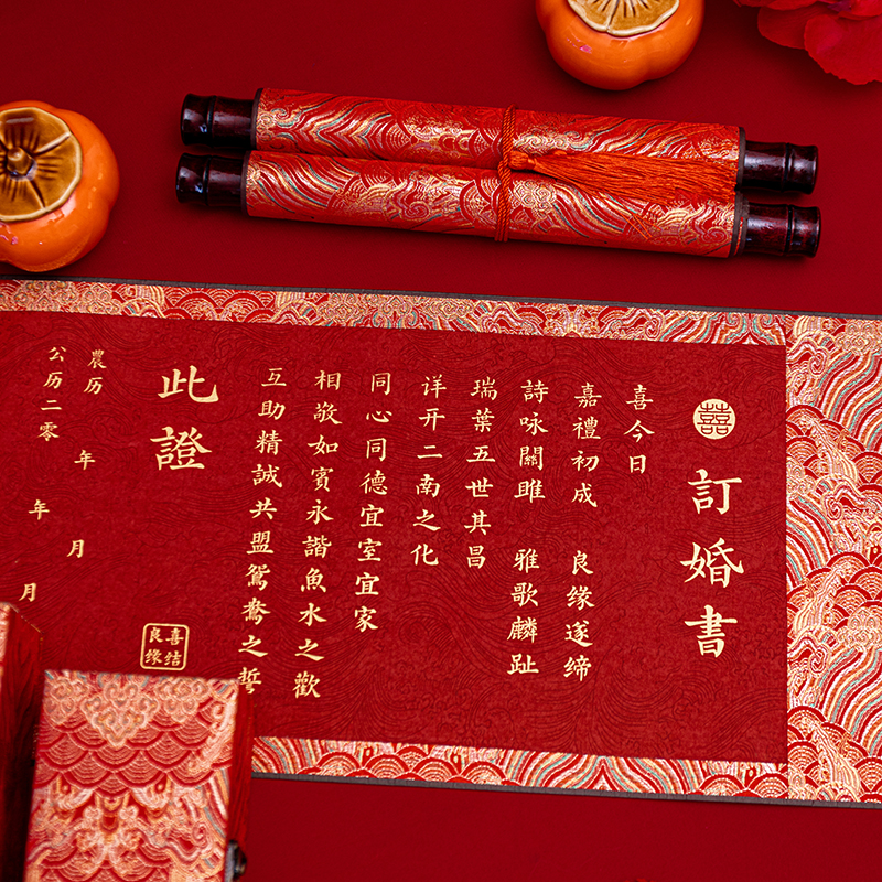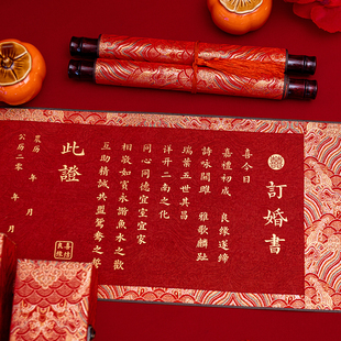 新中式 婚书卷轴订婚书中国风大气高级传统手写结婚送日子下聘书