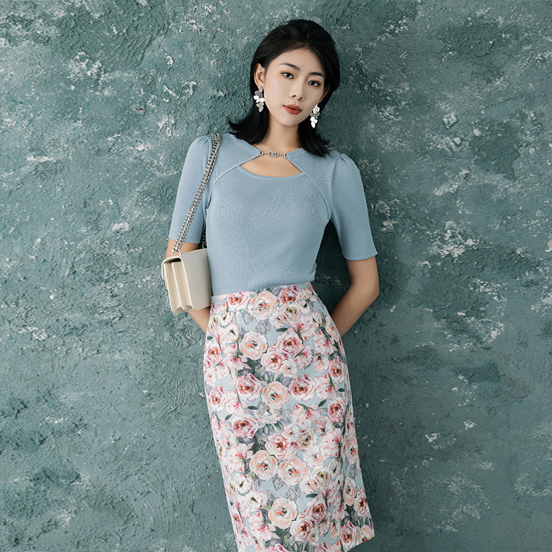 EC奕辰夏季 设计感T恤百搭纯色领口短链条针织上衣eahchanie 新款