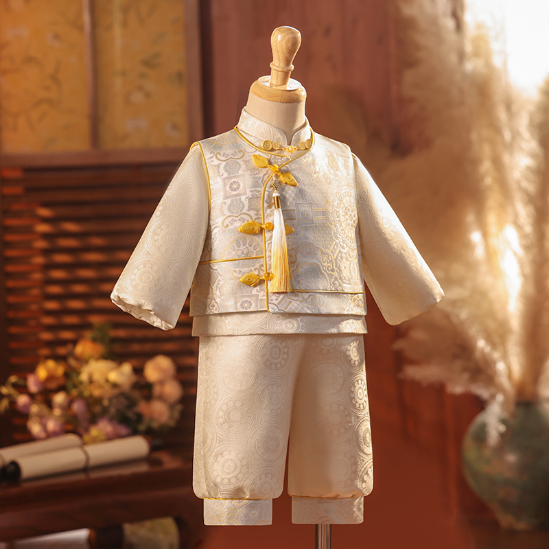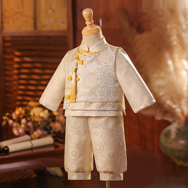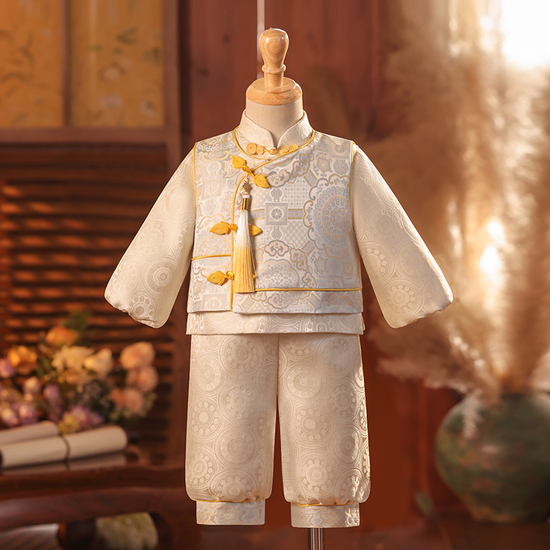男宝唐装 男童生日宴抓周服新中式 国风 2025新款 男宝宝周岁礼服春季