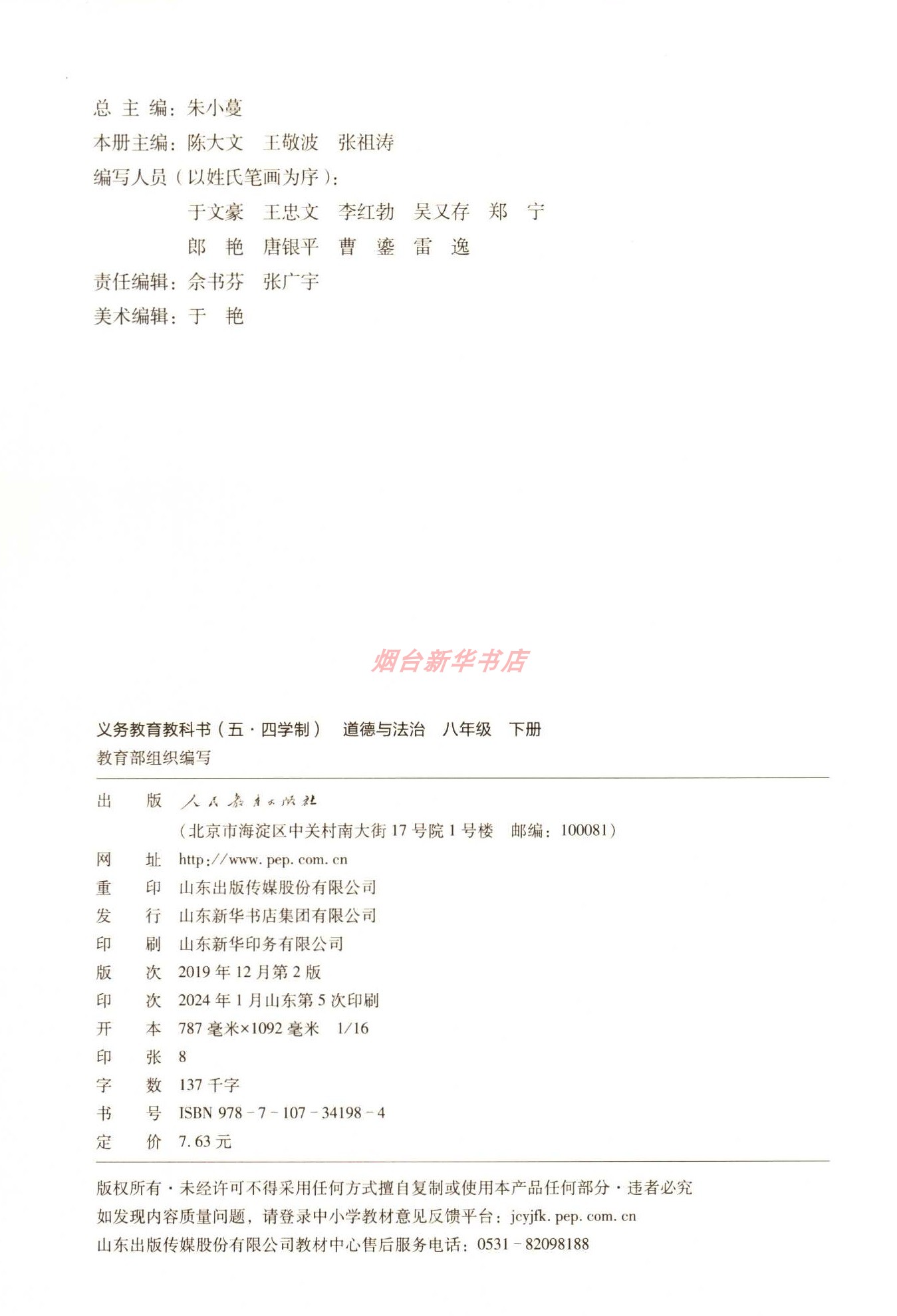 2024五四制八8年级下册道德与法治义务教育教科书初中课本教材人教版 社 人民教育出版