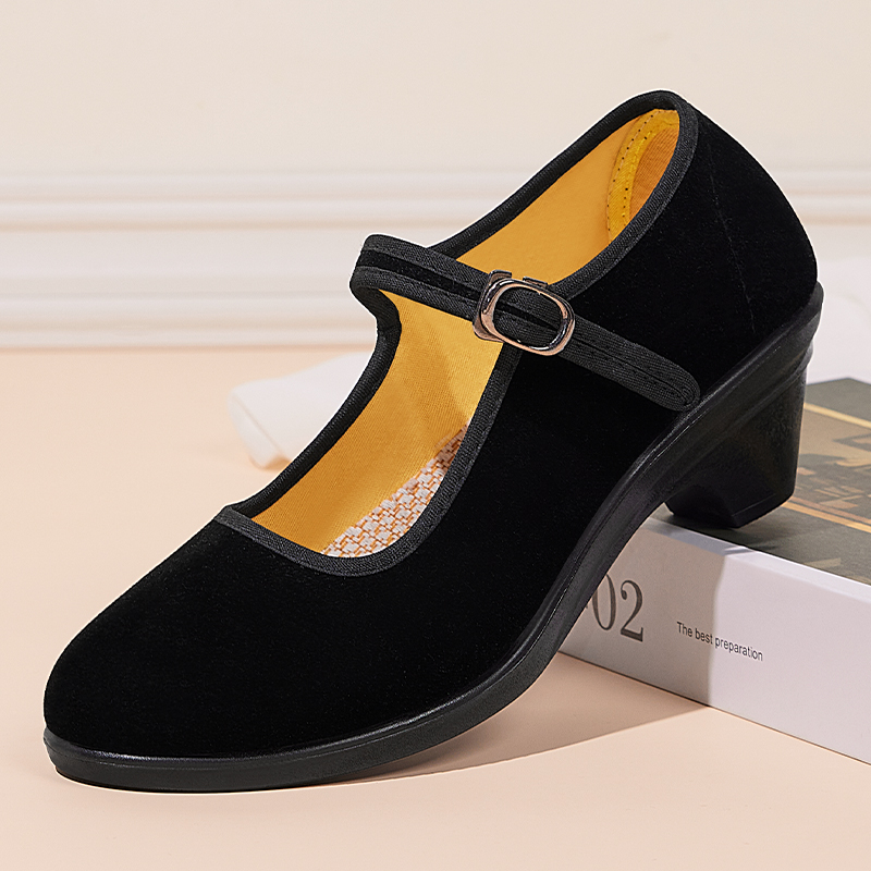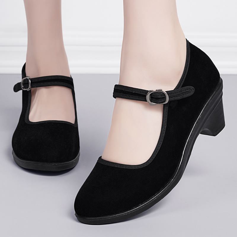 品牌职业黑色厚底平绒软底妈妈工作鞋 老北京布鞋 女官方旗舰店新款