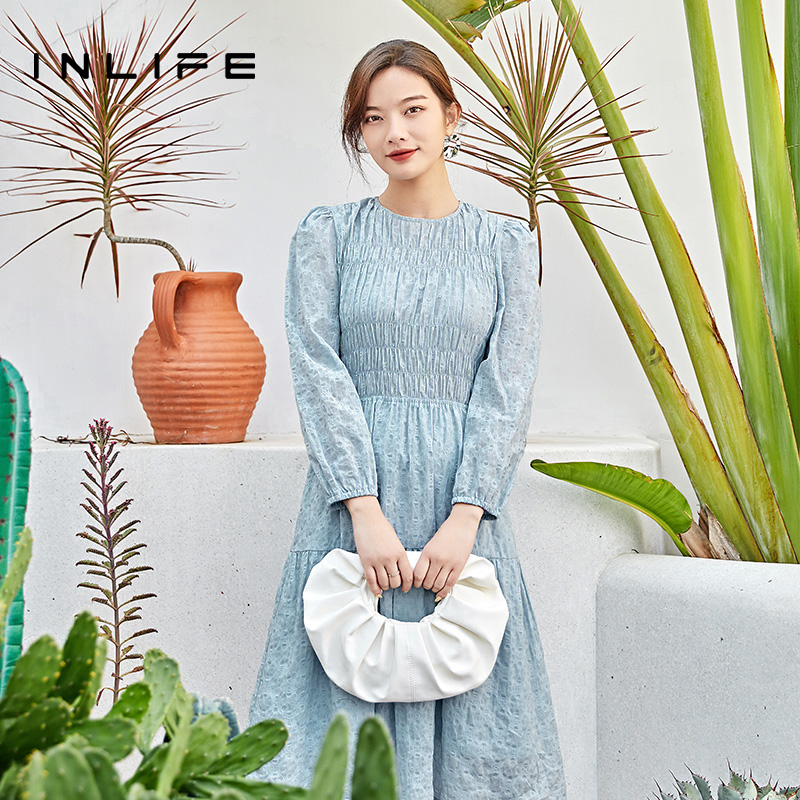 女简约通勤风绣花无袖 新款 连身裙 连衣裙2025秋装 秋水伊人圆领法式