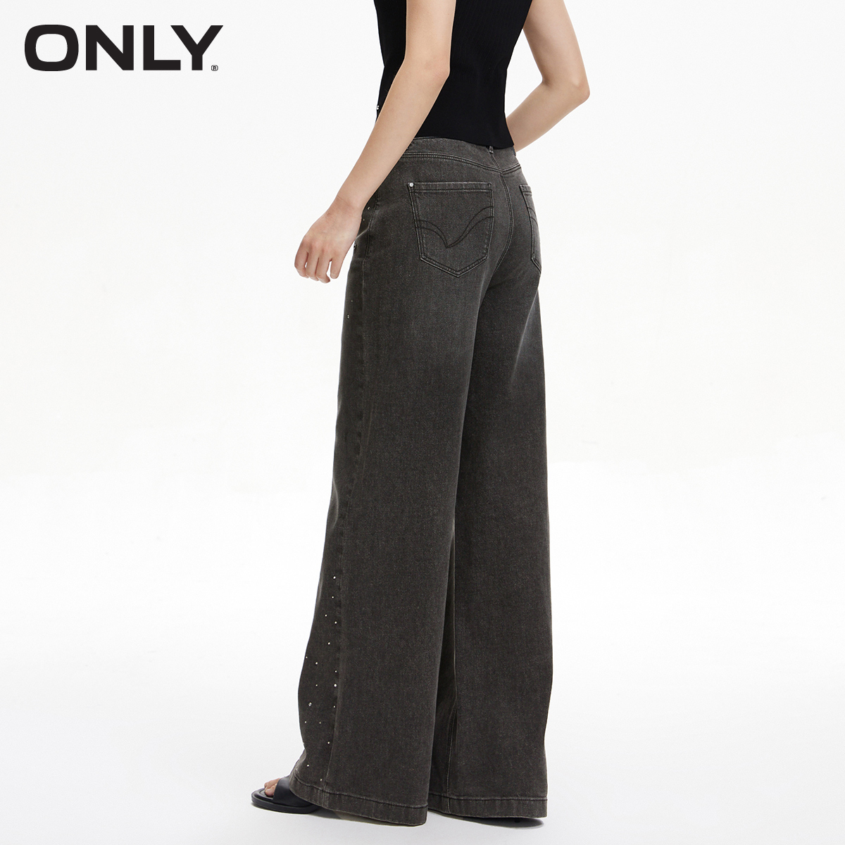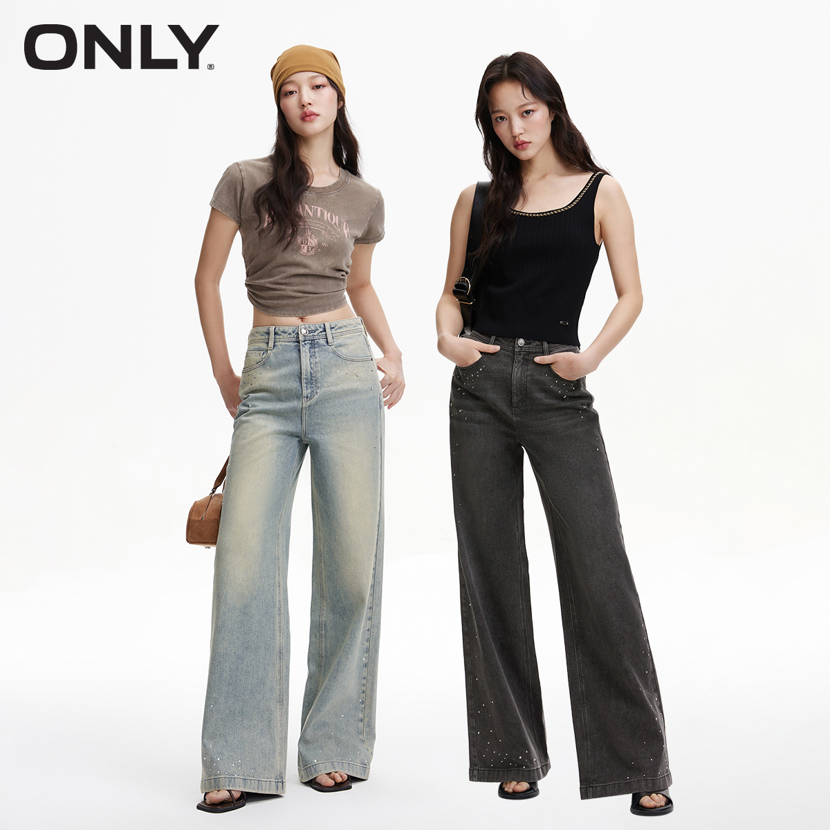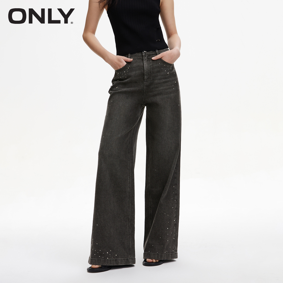 ONLY奥莱 高腰牛仔裤 秋季 水钻宽松喇叭裤 女 潮流时尚