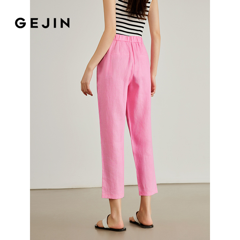 子 1OO亚麻显瘦女九分休闲裤 歌锦清凉舒适夏季 阔腿直筒裤