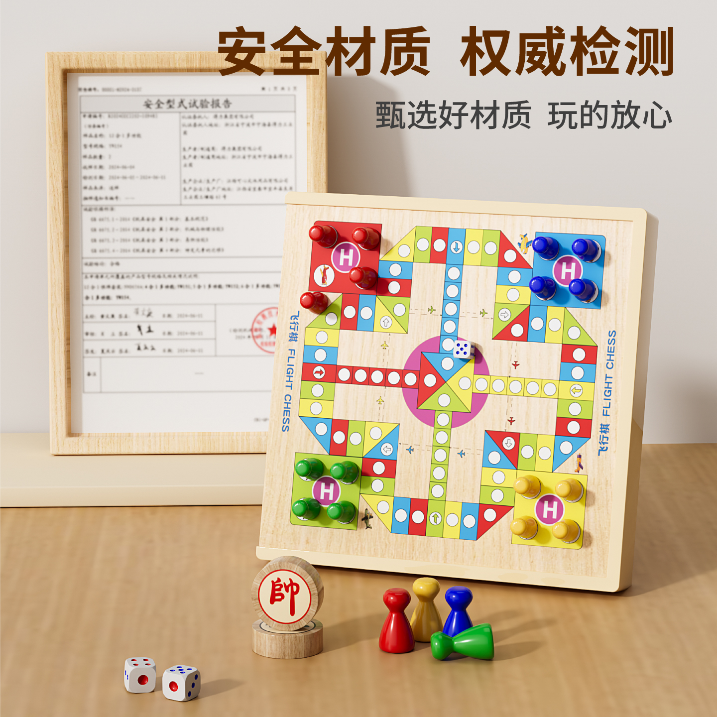 木质飞行棋多功能棋盘套装 多合一棋类益智玩具五子棋游戏生日礼物