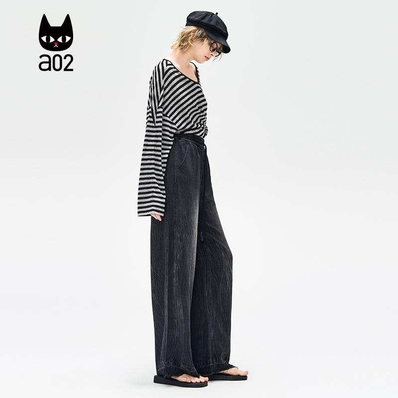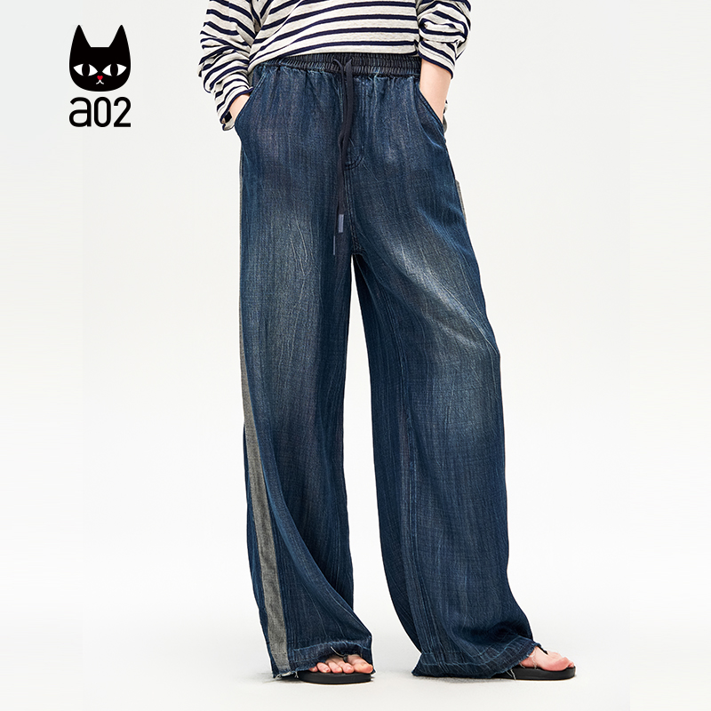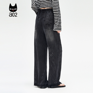 直筒阔腿裤 五只白鹅宽松牛仔裤 丹宁蓝高腰黑色窄版 新款 女2025秋季