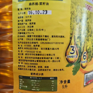 俄罗斯原装 原瓶油 进口森荞姆菜籽油冷压榨低芥酸食用油10斤装