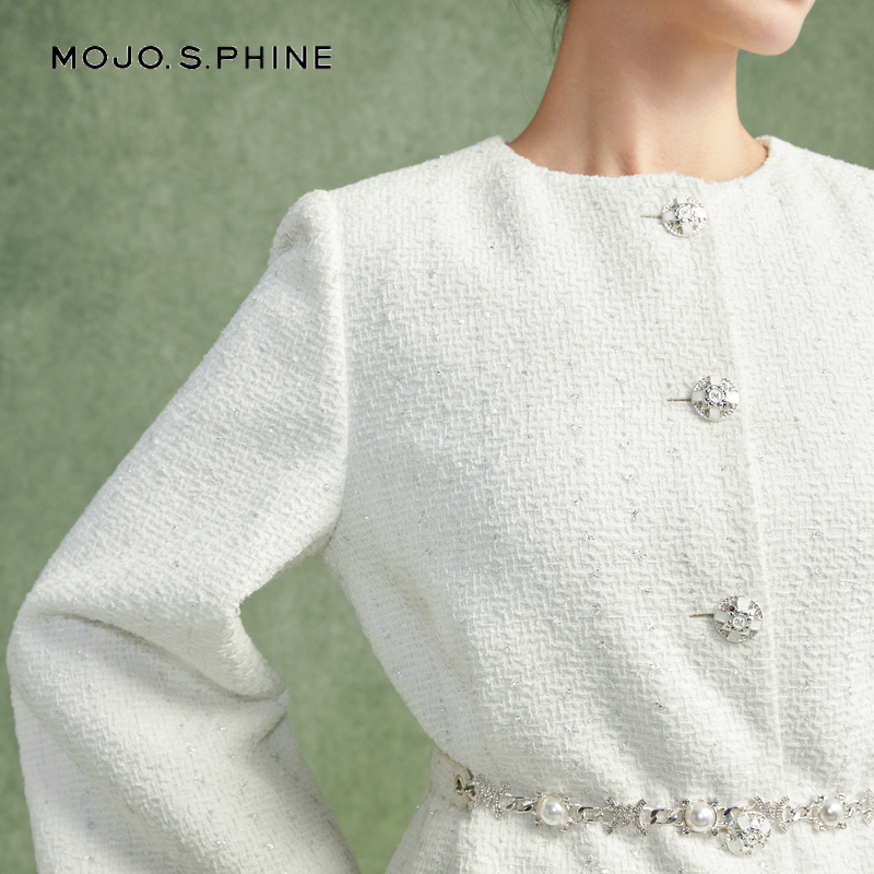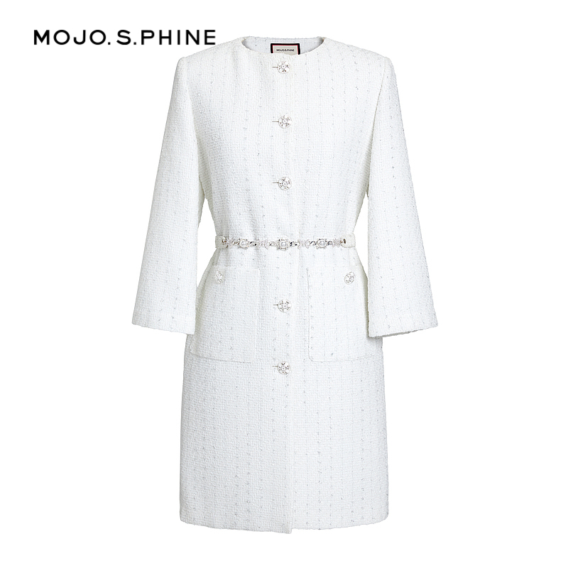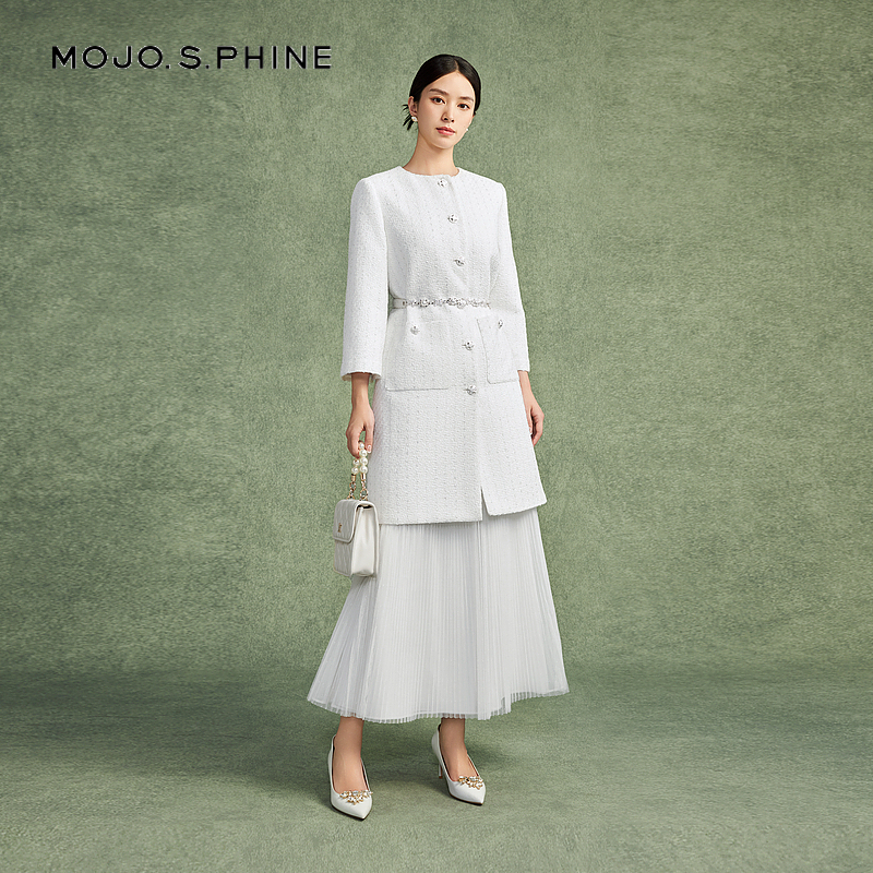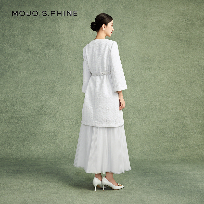 MOJO莫佐圆领山茶花立体廓形连衣裙2024年新款 优雅气质H型中长裙
