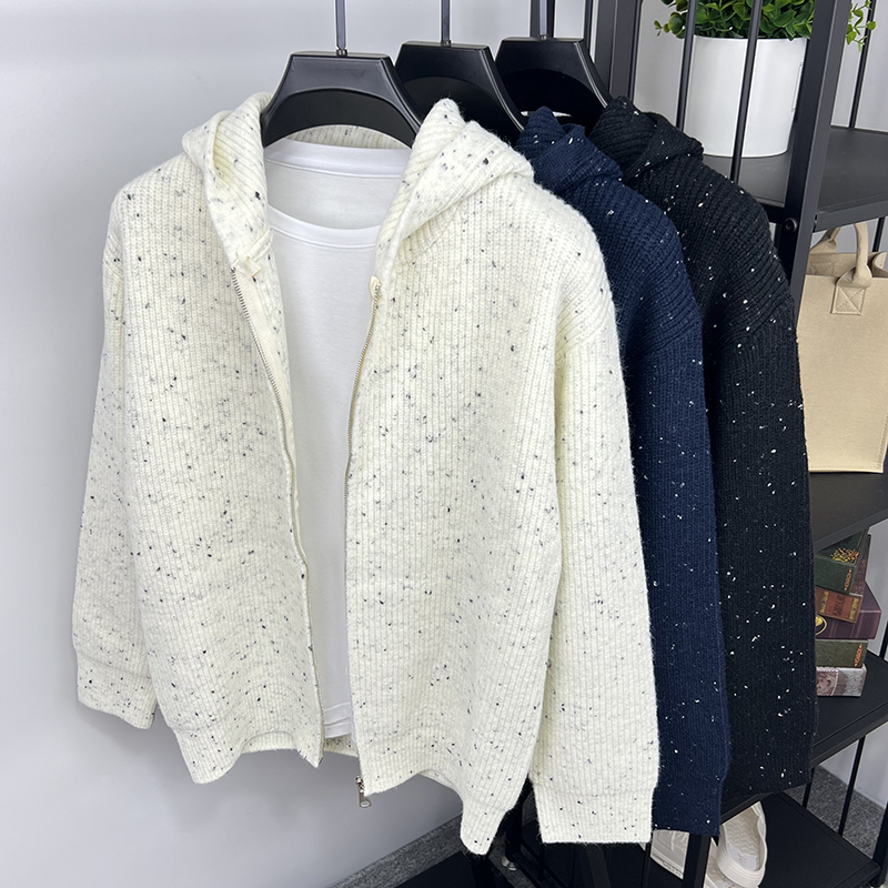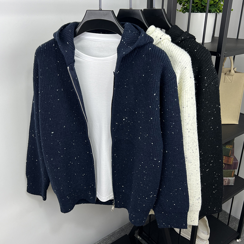 宽松慵懒风针织衫 潮流休闲毛衣男装 加厚外套 男春秋季 连帽拉链开衫