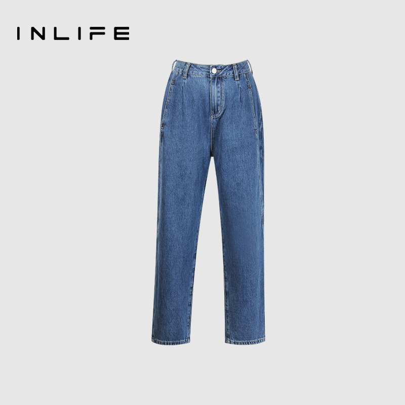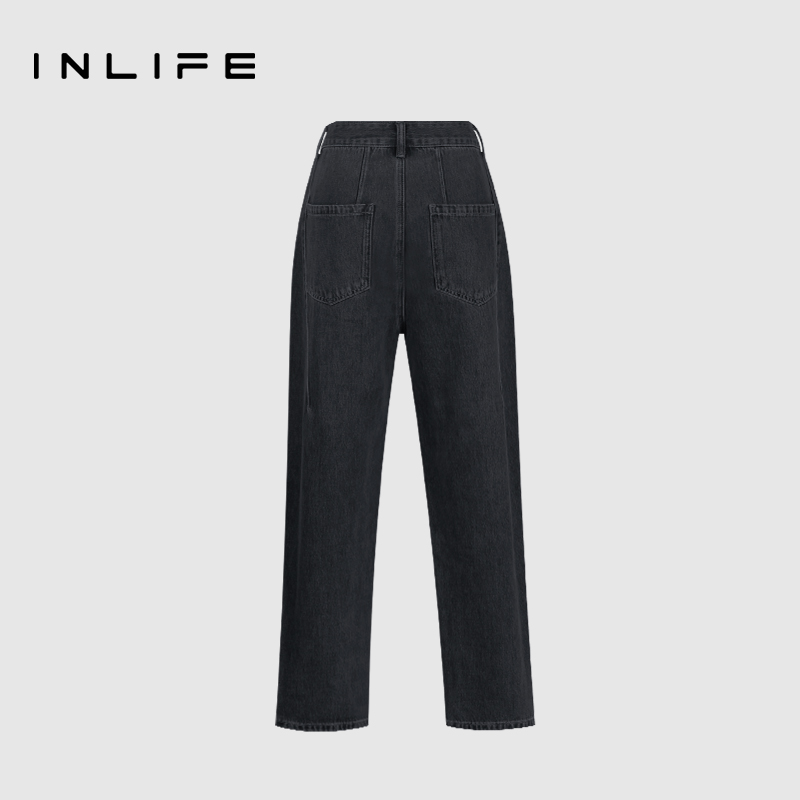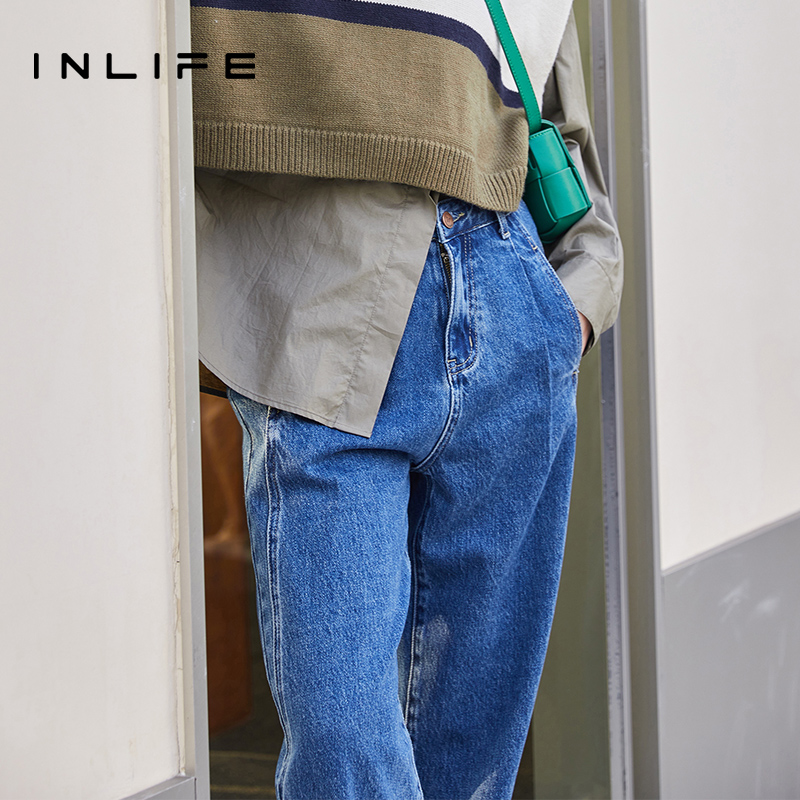 设计感韩系休闲百搭直筒高腰长裤 乐町全棉水洗牛仔阔腿裤 2025秋季