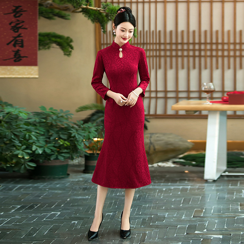 菲梦伊原创钉珠提花连衣裙女秋季 国风高端气质贵妇旗袍裙子 新中式