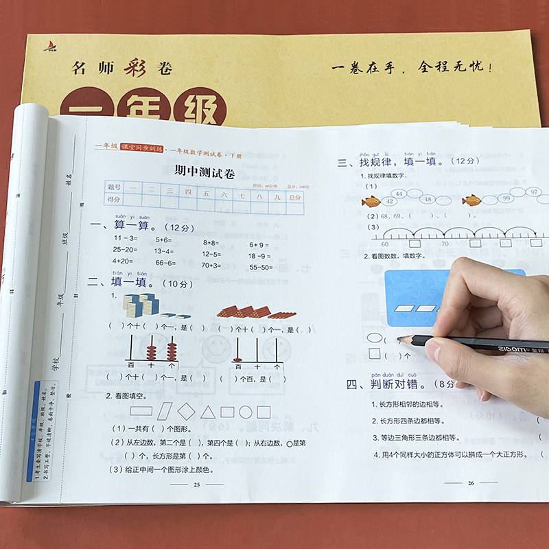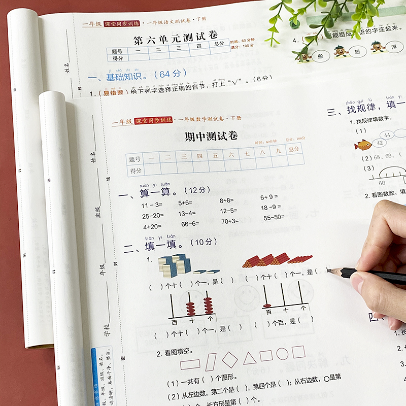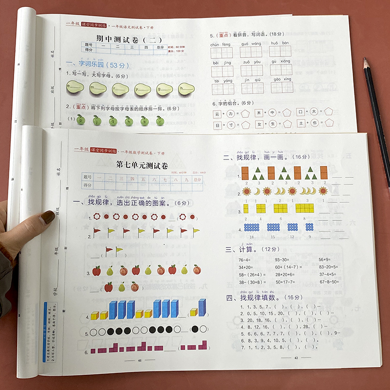 测试ab卷 教材下学期ab卷子练习题单元 一年级试卷下册试卷测试卷全套2册语文 数学同步练习册应用题专项训练小学数学思维训练人教版