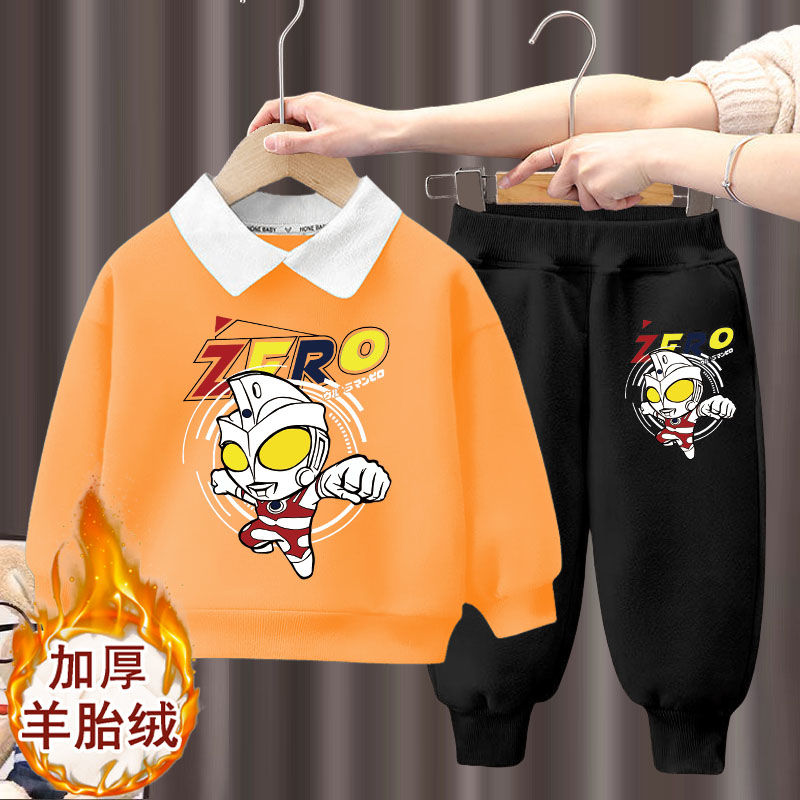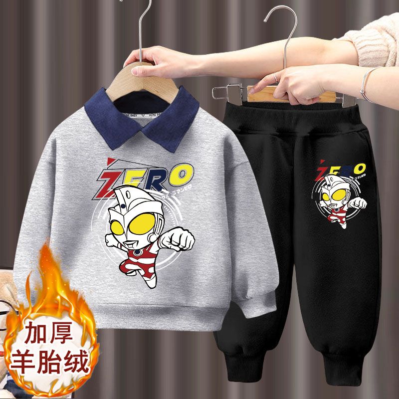秋冬款 Polo领奥特曼衣服洋气卫衣卫裤 两件套潮 冬季 小黄鸭男童套装
