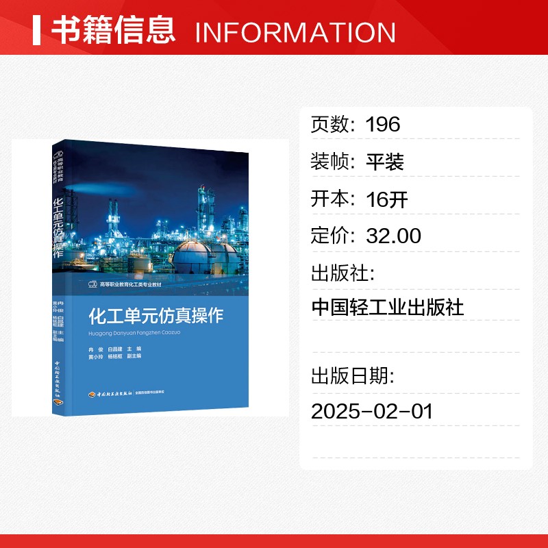 大学教材大中专 社 冉俊 中国轻工业出版 图书籍 新华书店正版 编 杨铭枢 白昌建;黄小玲 仿真操作 化工单元