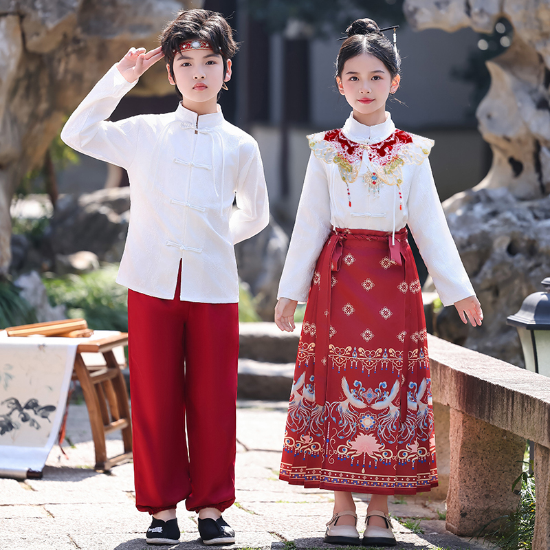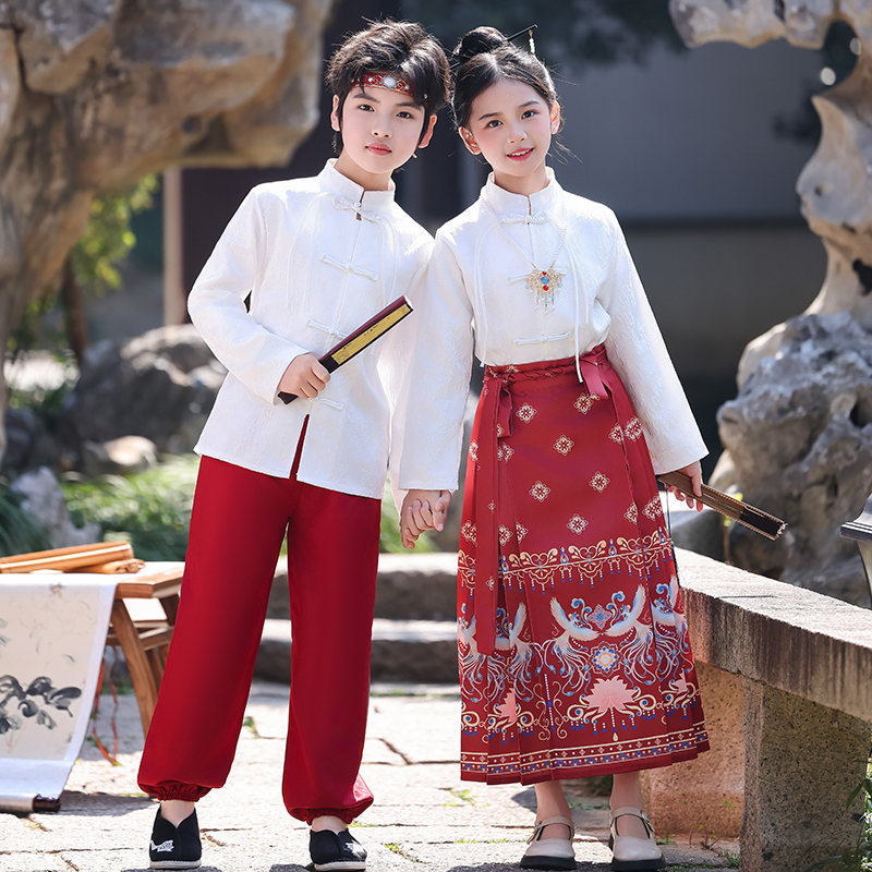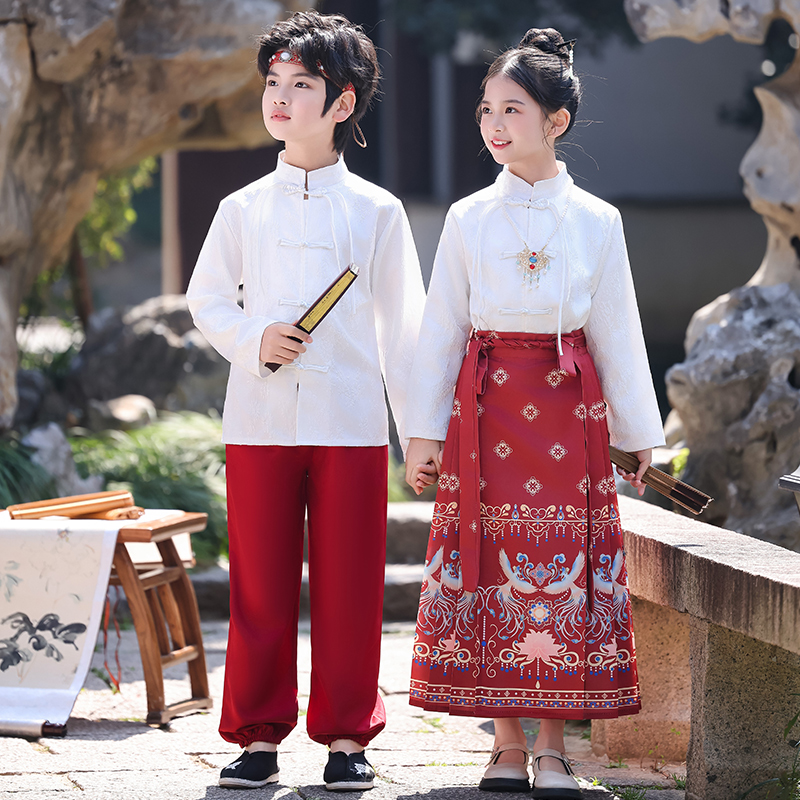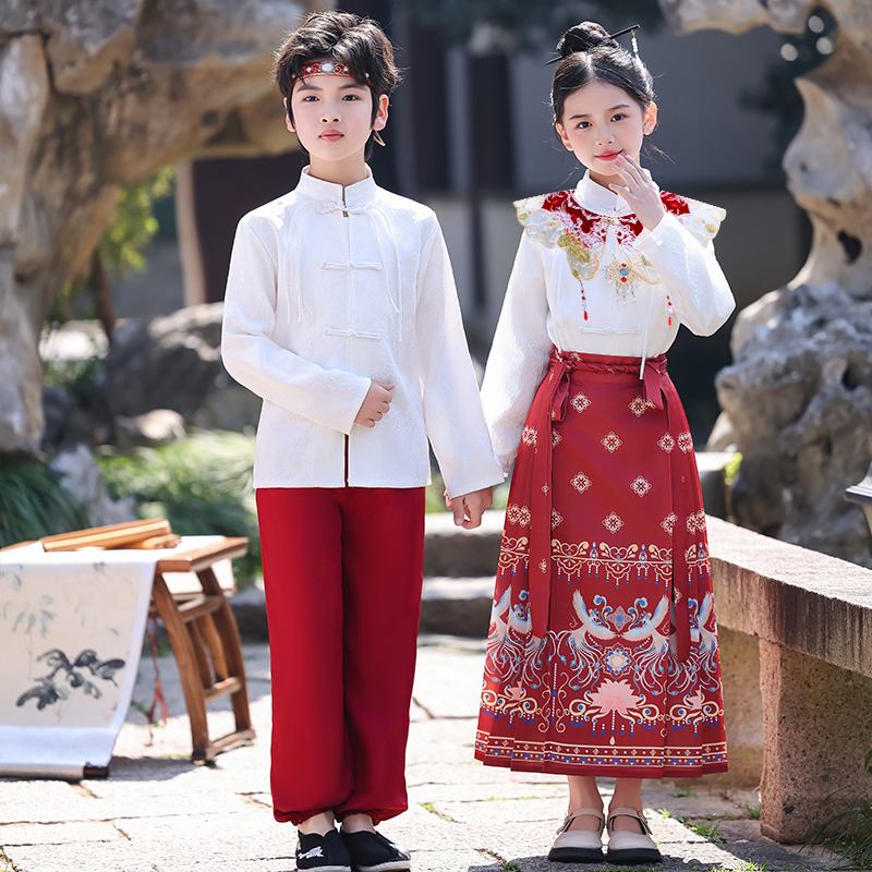 男童 古风男孩唐装 中秋节服装 儿童马面裙女童演出服中国风2025新款