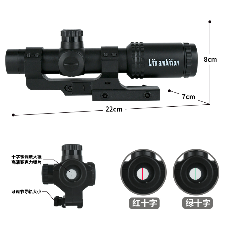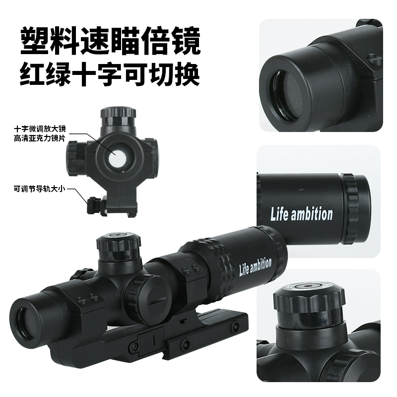 弹弓配件塑料速瞄瞄准器红十字望远镜绿十字镜模型件玩具高清手持
