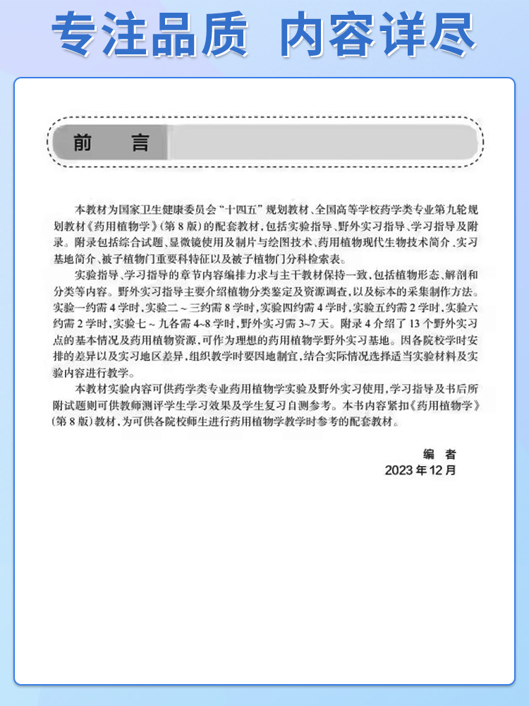 黄宝康本科药学专业十四五规划教材本科药学第九轮配套教材大学本科教材人民卫生出版 三版 社 药用植物学实践与学习指导第3版 人卫版