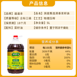 道道全洞庭甄选菜籽油5L清香纯香纯正食用油 下拉详情页享官补