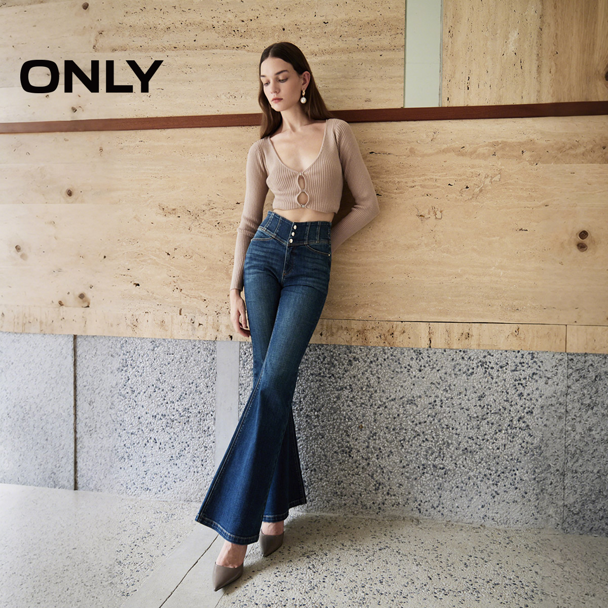 牛仔裤 ONLY2025秋季 复古水洗高腰喇叭裤 辣妹提臀小个子神裤 女 新款