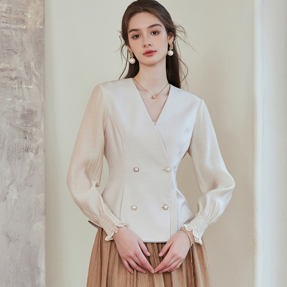 宽松气质通勤衬衣职业正装 女2025秋季 上衣 衬衫 高级感白色缎面长袖