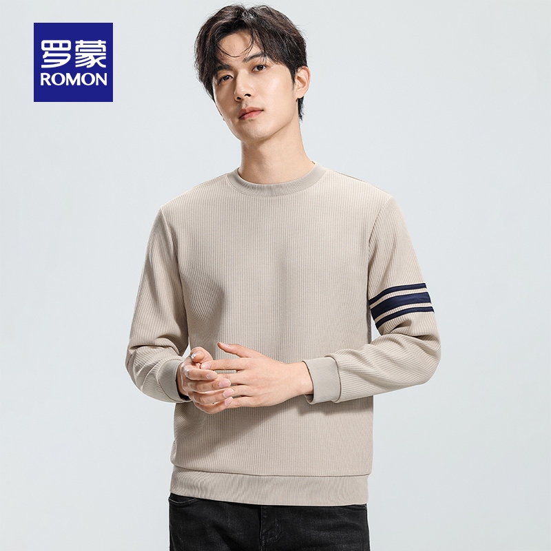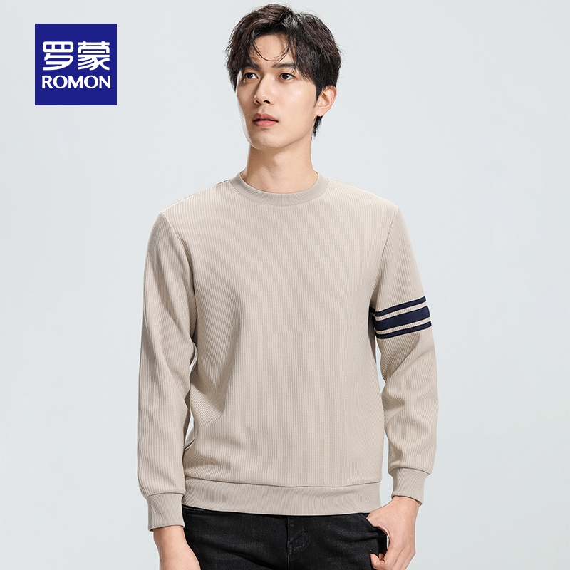 圆领卫衣2025秋季 罗蒙男士 新款 时尚 套头上衣男 潮流长袖 华夫格