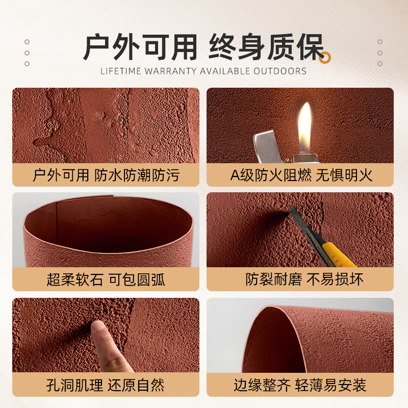 软瓷丹霞红夯土板软石3D定制颜色夯土墙夯土砖湘菜烤肉店餐厅装 饰