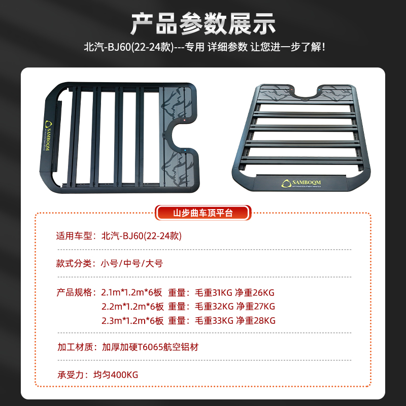 山步曲适用于北京BJ60车顶行李架拓展平台改装 爬梯卫士款