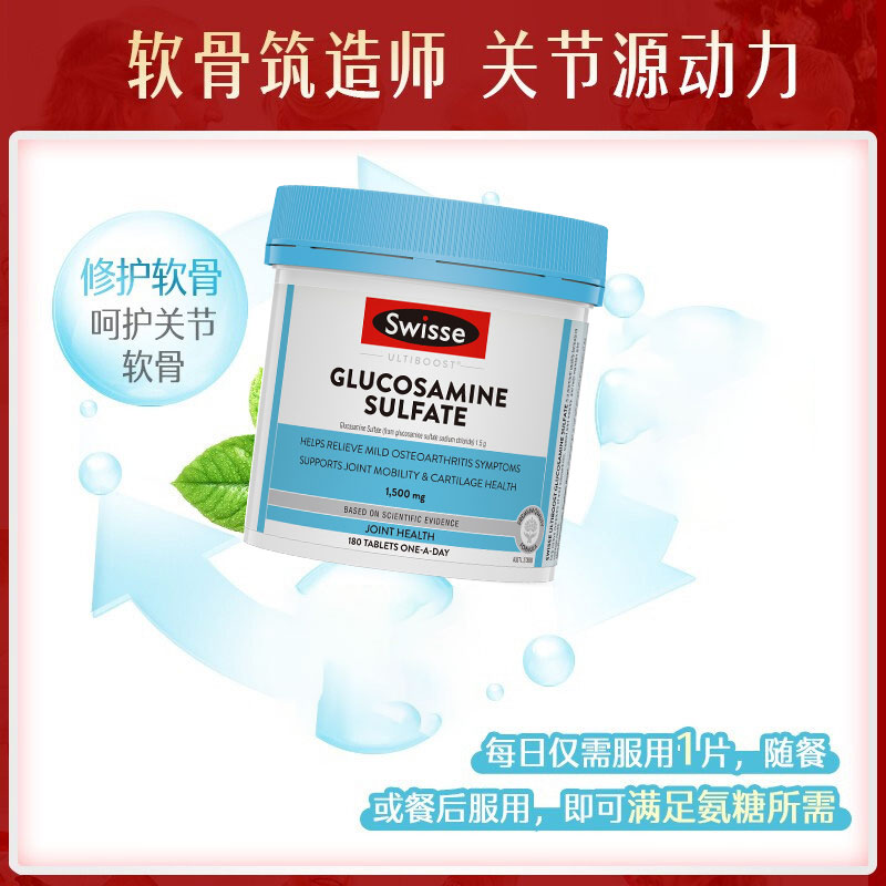swisse斯维诗关节片氨糖软骨素维骨力180粒 效期2026.8.1
