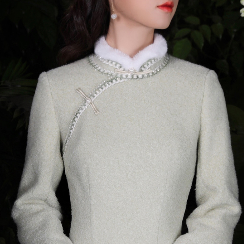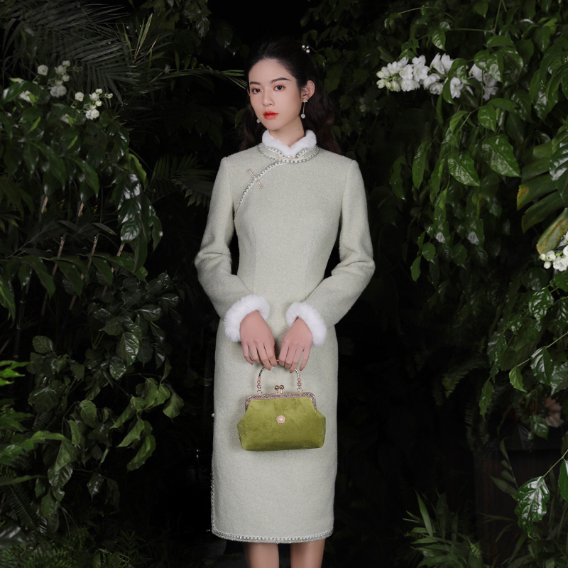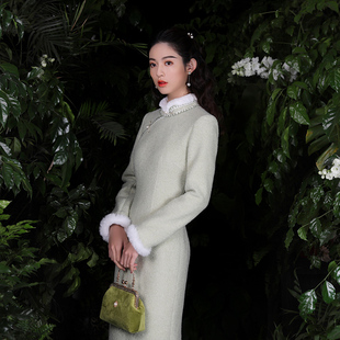 国风女装 绿色丝绒旗袍连衣裙女2025年秋冬新款 年会礼服裙子新中式