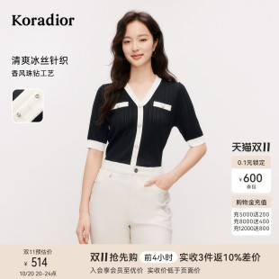 黑白拼色通勤V领针织衫 珂莱蒂尔夏季 上衣女 风雅新舒