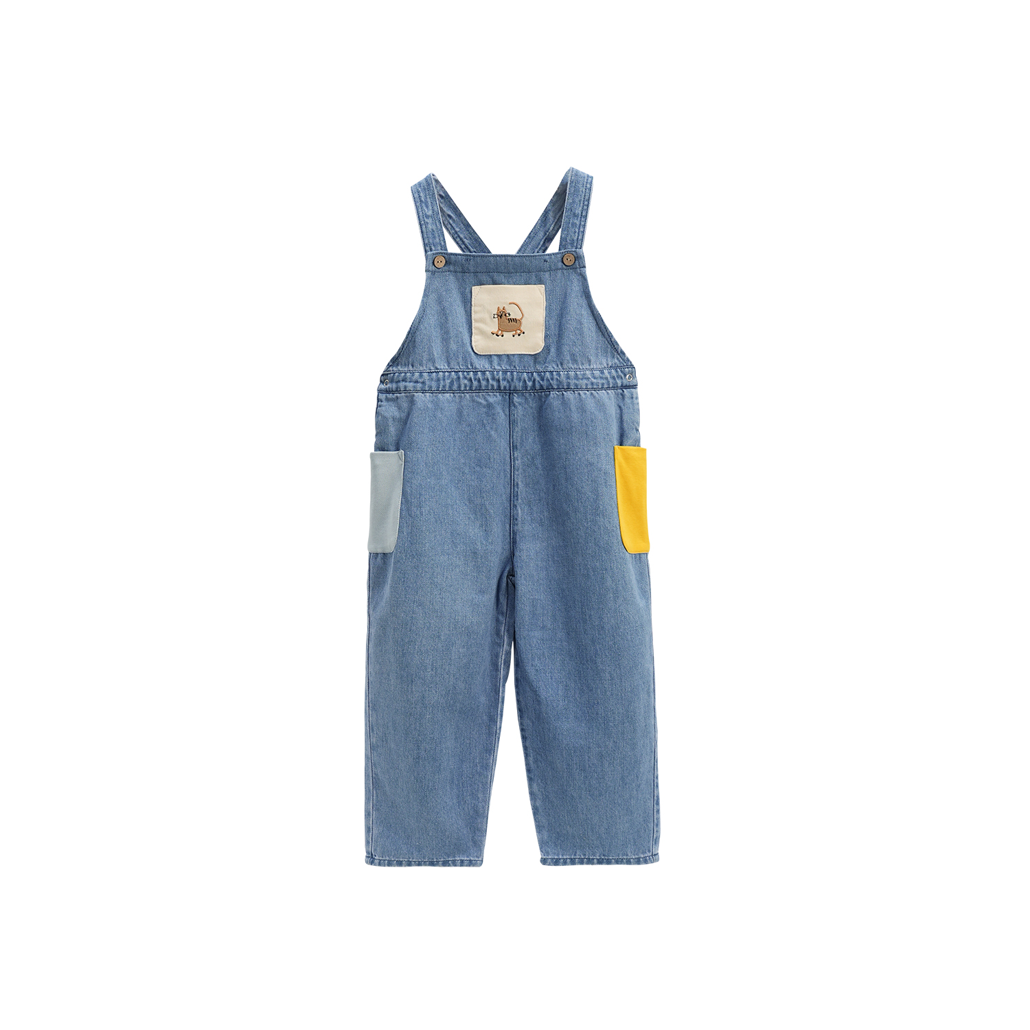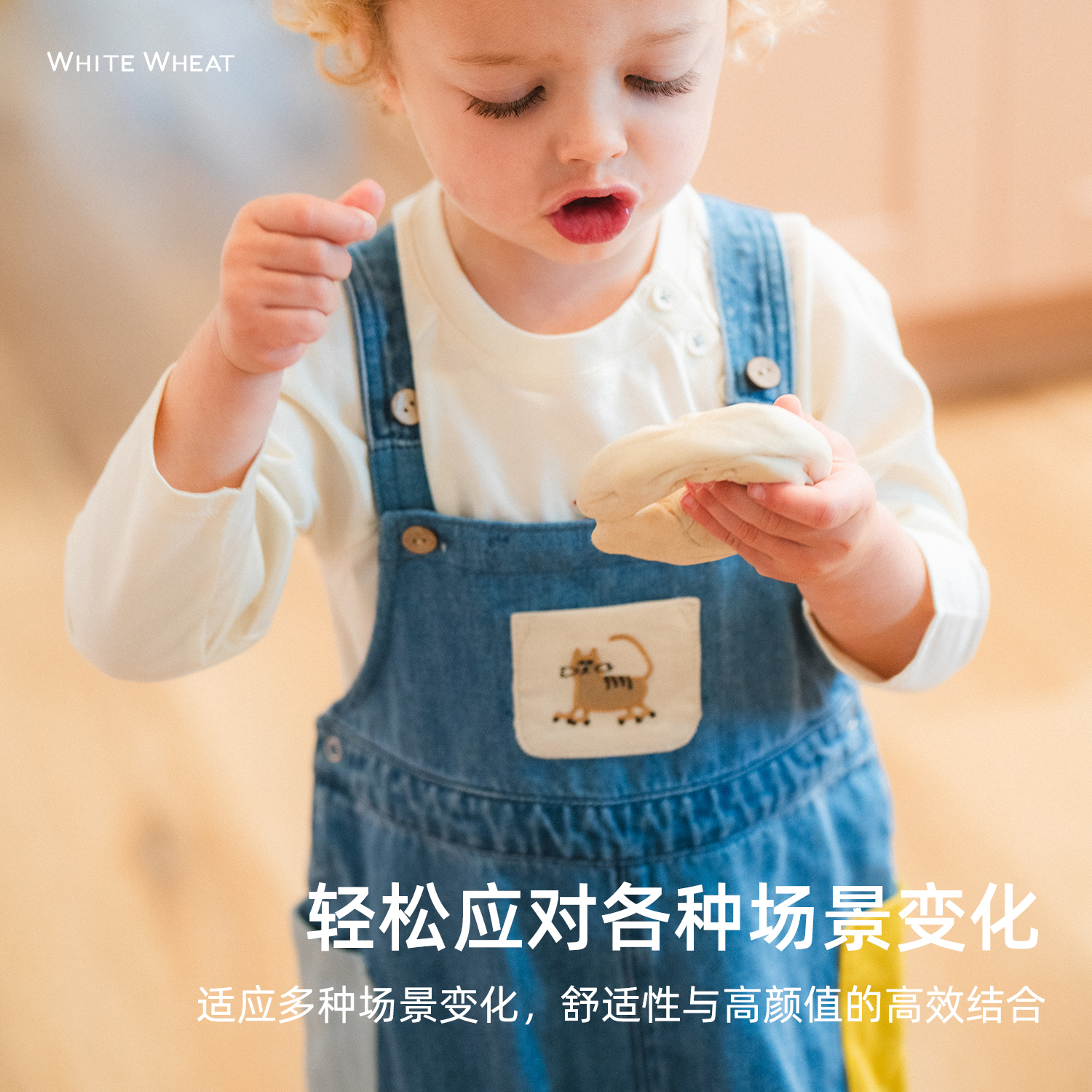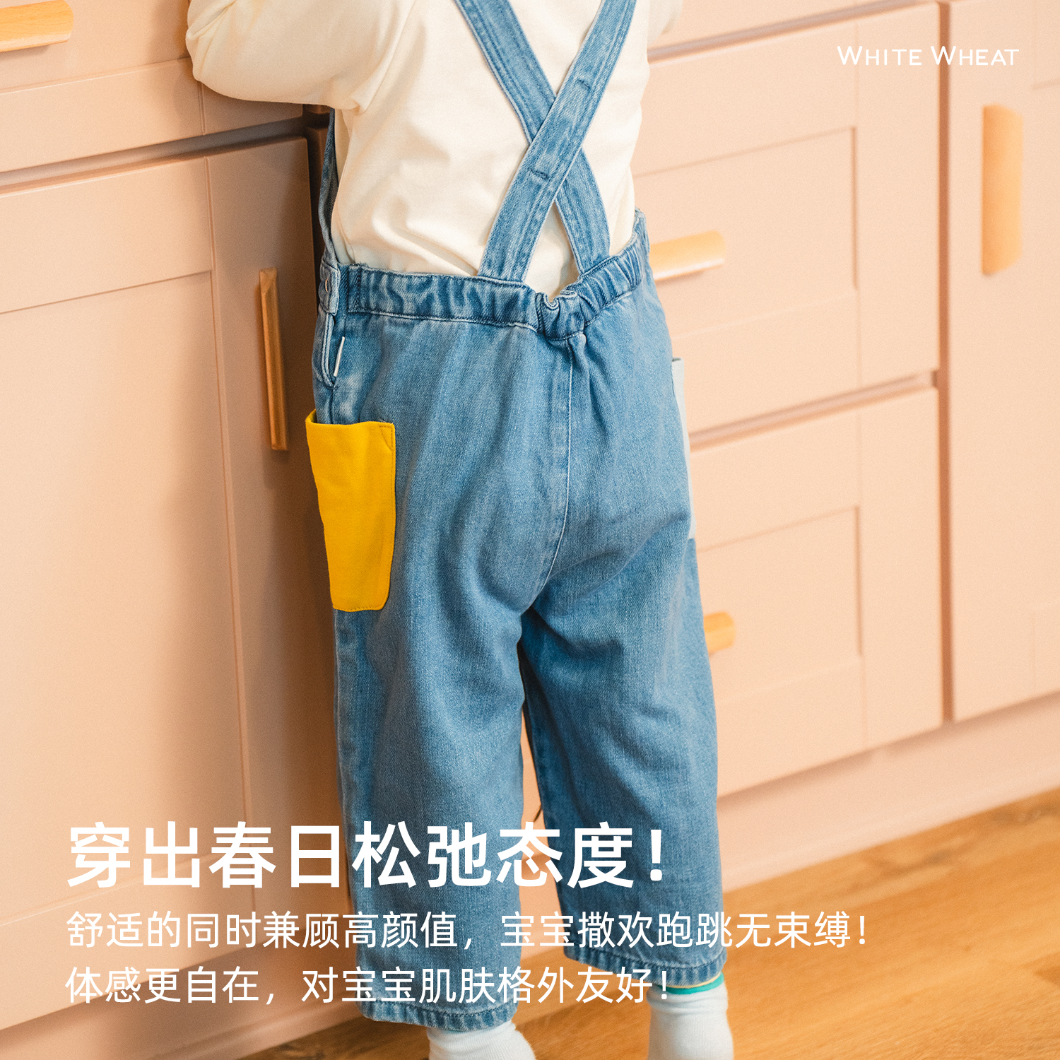 男孩纯棉牛仔背带裤 whitewheat儿童2025春季 子女童卡通长裤 裤 新款