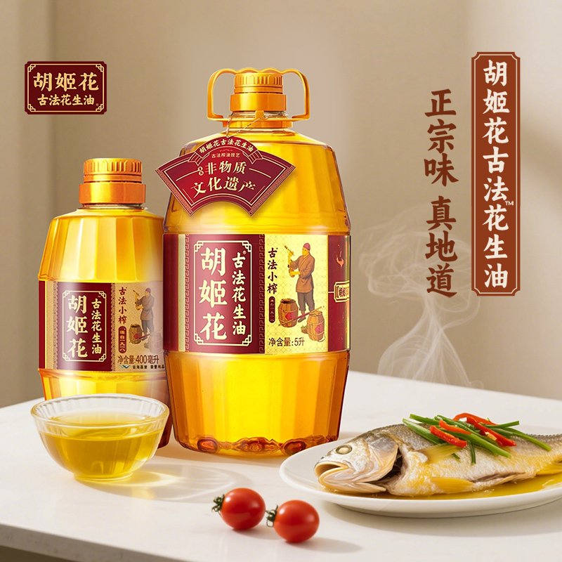 1瓶 古法小榨花生油400ml 胡姬花古法小榨花生油5L 1桶