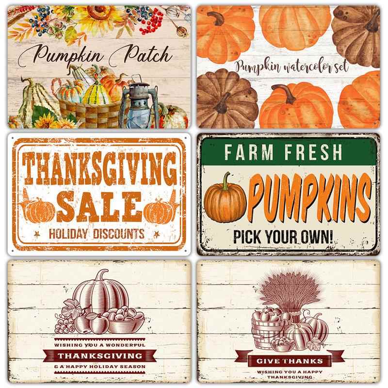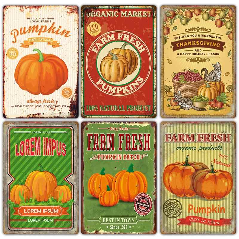 饰挂画 厨房家居铁皮画万圣节酒吧背景墙壁无框装 新款 南瓜复古美式