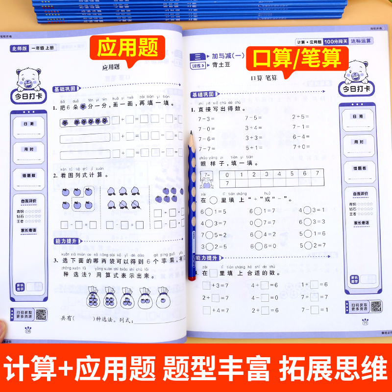 练习题练习册口算题卡天天练速算每日一练 北师大版 100分闯关小学数学计算题 应用题专项强化训练题一二三四五六年级上册下册人教版