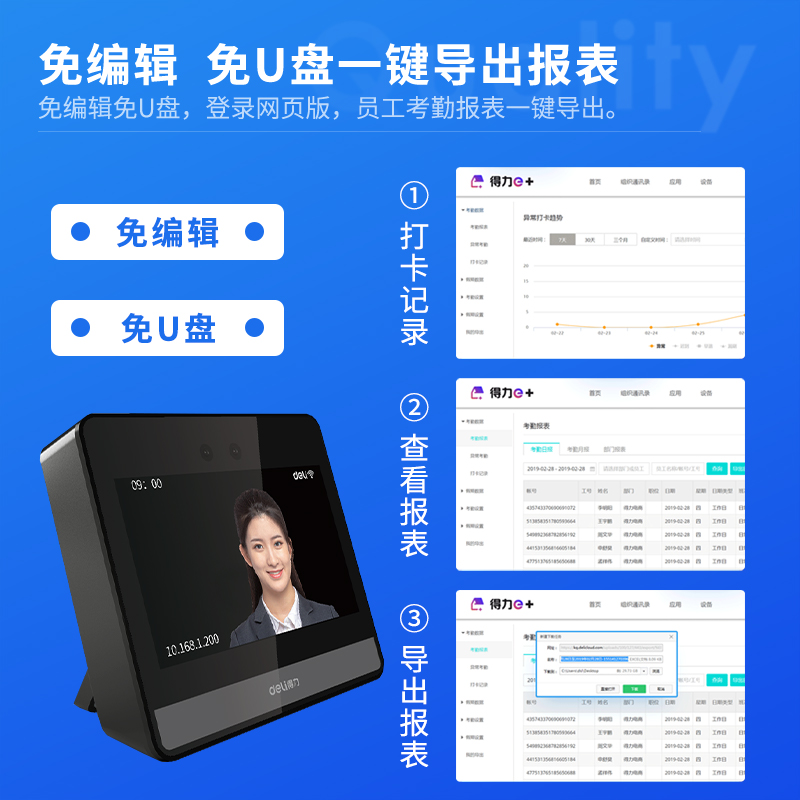 得力智能云人脸考勤机WIFI无线联网员工上下班多人识别签到异地多店管理刷脸D2 D5S面部识别打卡机
